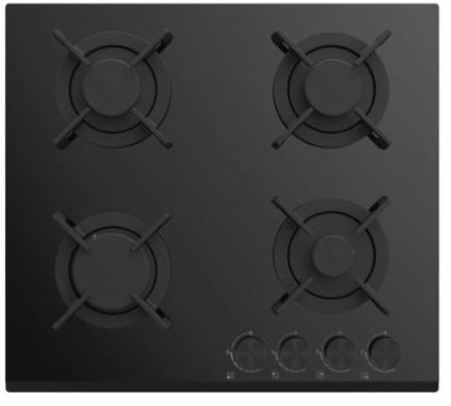 Plaque de cuisson à gaz PREMIUM 4 Feux 60cm , Élégance intemporelle : Design verre noir mat pour un rendu moderne, Sécurité intégrée : Thermocouple anti-fuite et allumage électrique , Commandes pratiques : Accès frontal intuitif et facile , Dimensions adaptées aux cuisines classiques , Garantie 1 an